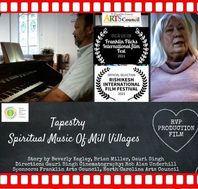 Our Tapestry is the stories of our homelands, cultures, faith, and struggles. Imagine you are journeying across the ocean on a slave ship to the plantation fields, leaving the land of your ancestors because of famine, political unrest, digging in the dirt farms as sharecroppers, going to work for “the Man” in the Mill Villages where churches were the epicenters. The film speaks about music played in churches in the piedmont region of North Carolina especially churches of Gastonia, North Carolina where cotton mills existed. Our cast, Brian Miller, takes us on a journey of a Mill Village where his ancestors worked, and the church that they attended where hymns and spiritual music played a major role in the lives of the cotton mill people.